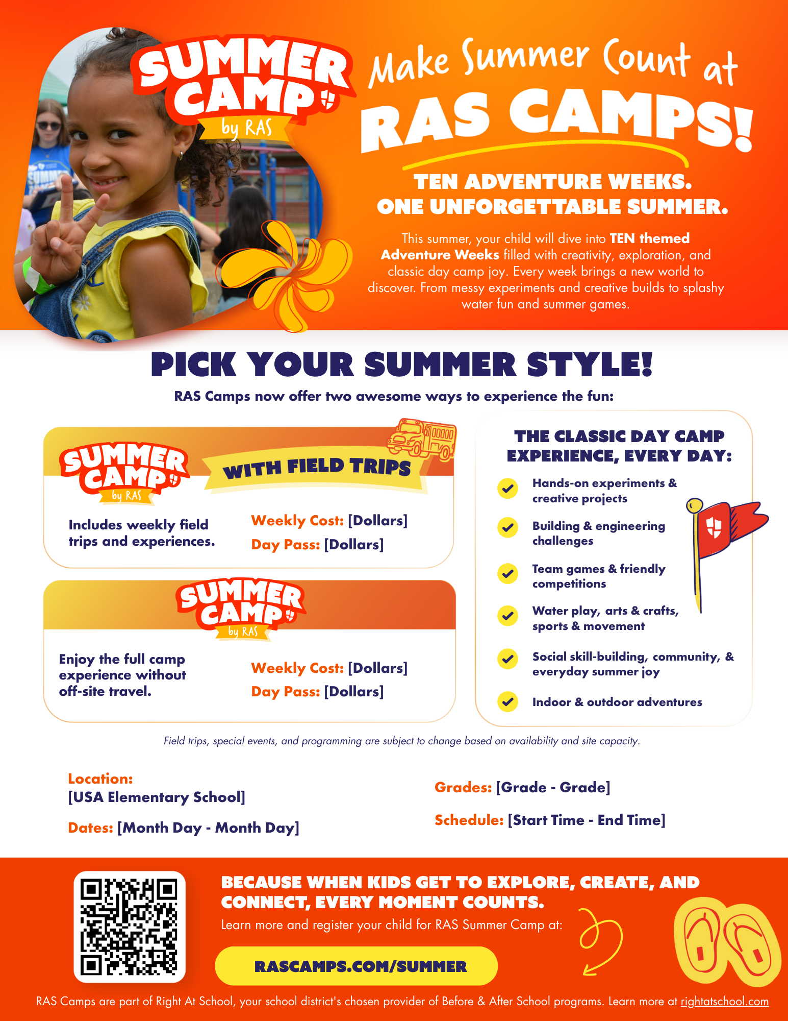 This flyer is designed to get families excited about Summer Camp 2026 and keep them engaged, even if your camps aren't quite open yet.