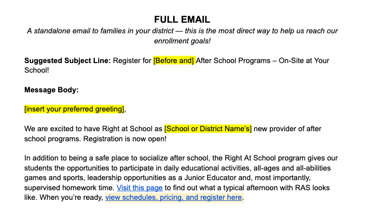 Use these templates when asking new district partners to share information about RAS with their school communities!