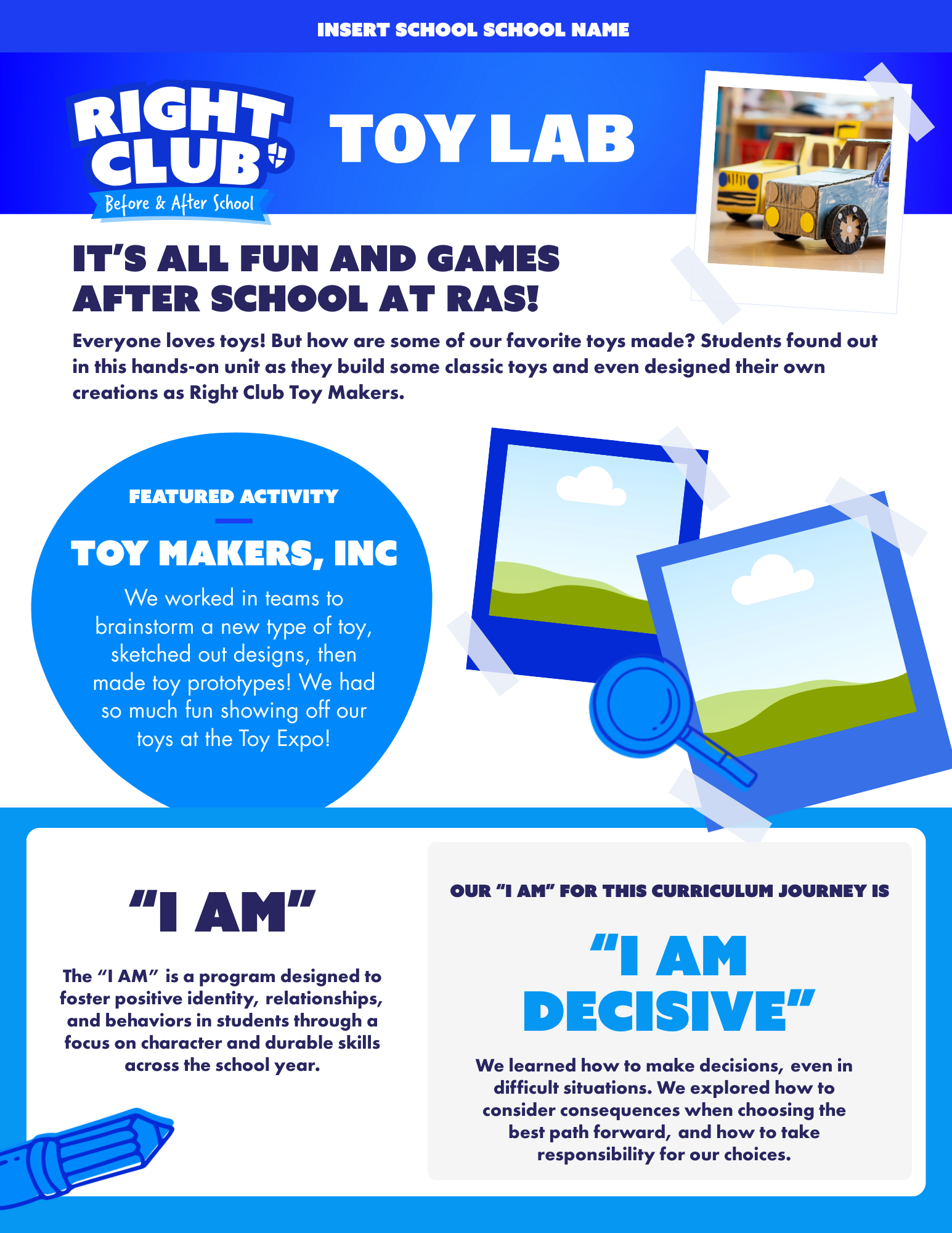 Fill out our curriculum newsletter with the invite template in Week One, and the collage with plenty of photos after the Toy Lab Expo is done!