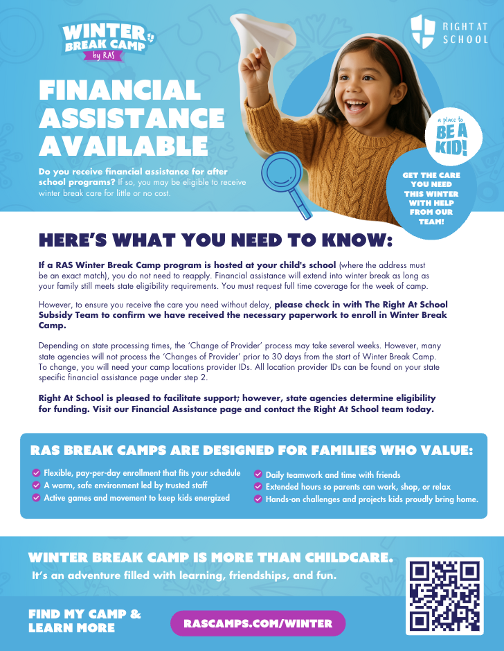 Flyers that share information about the subsidy process & eligibility for Winter Break Camps.